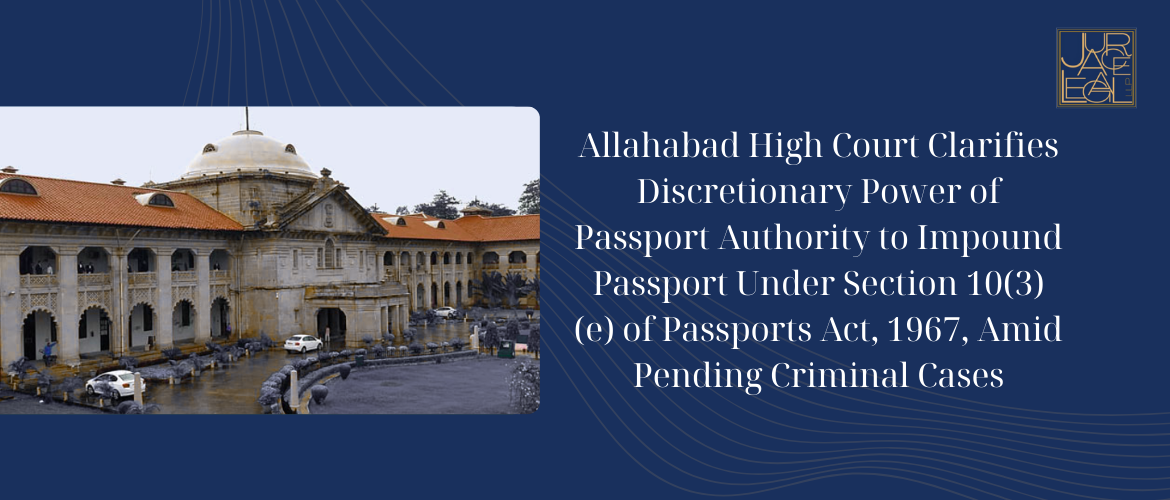 In the recent case of Mohammad Umar Vs. Union of India & Ors., the Allahabad High Court has clarified that under Section 10(3)(e) of the Passports Act, 1967, the impounding of a passport in cases where criminal proceedings are pending is not mandatory. The Court emphasised that the term “may” as used in this provision confers discretion upon the passport authority, enabling them to consider each case on its merits and to document their satisfaction in writing should they decide to impound the passport.