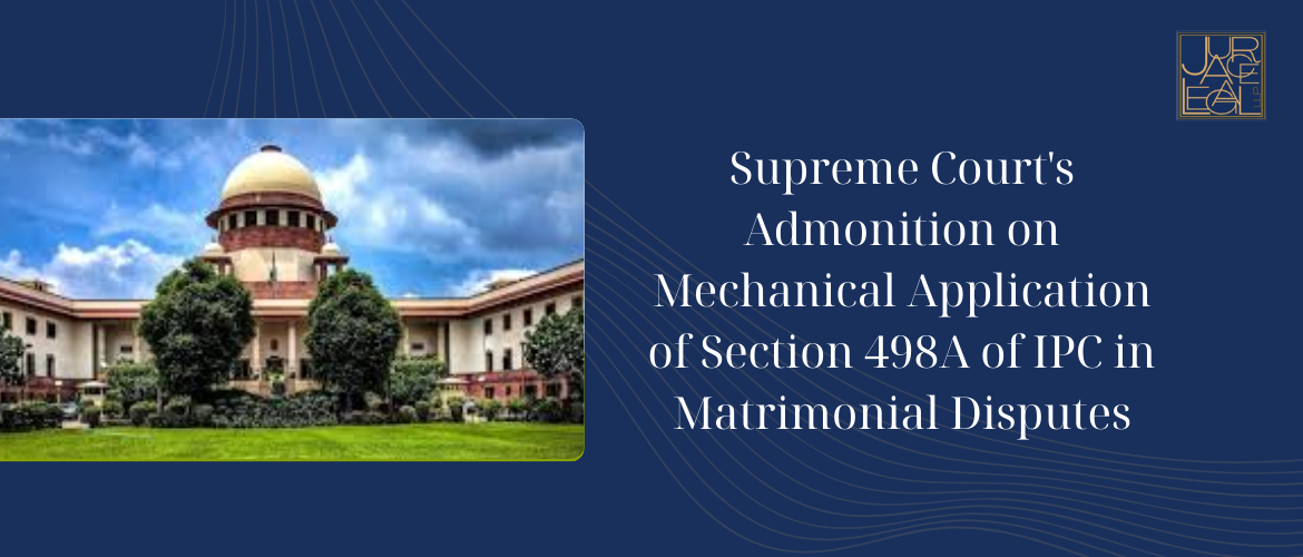 In the recent case of Achin Gupta Vs. State of Haryana & Anr., the Supreme Court of India delivered a significant judgment cautioning against the mechanical application of Section 498A of the Indian Penal Code (IPC) in matrimonial disputes. The Court emphasised the need for careful consideration of the circumstances before invoking this provision, highlighting the importance of tolerance, adjustment, and mutual respect between spouses in marriage.
